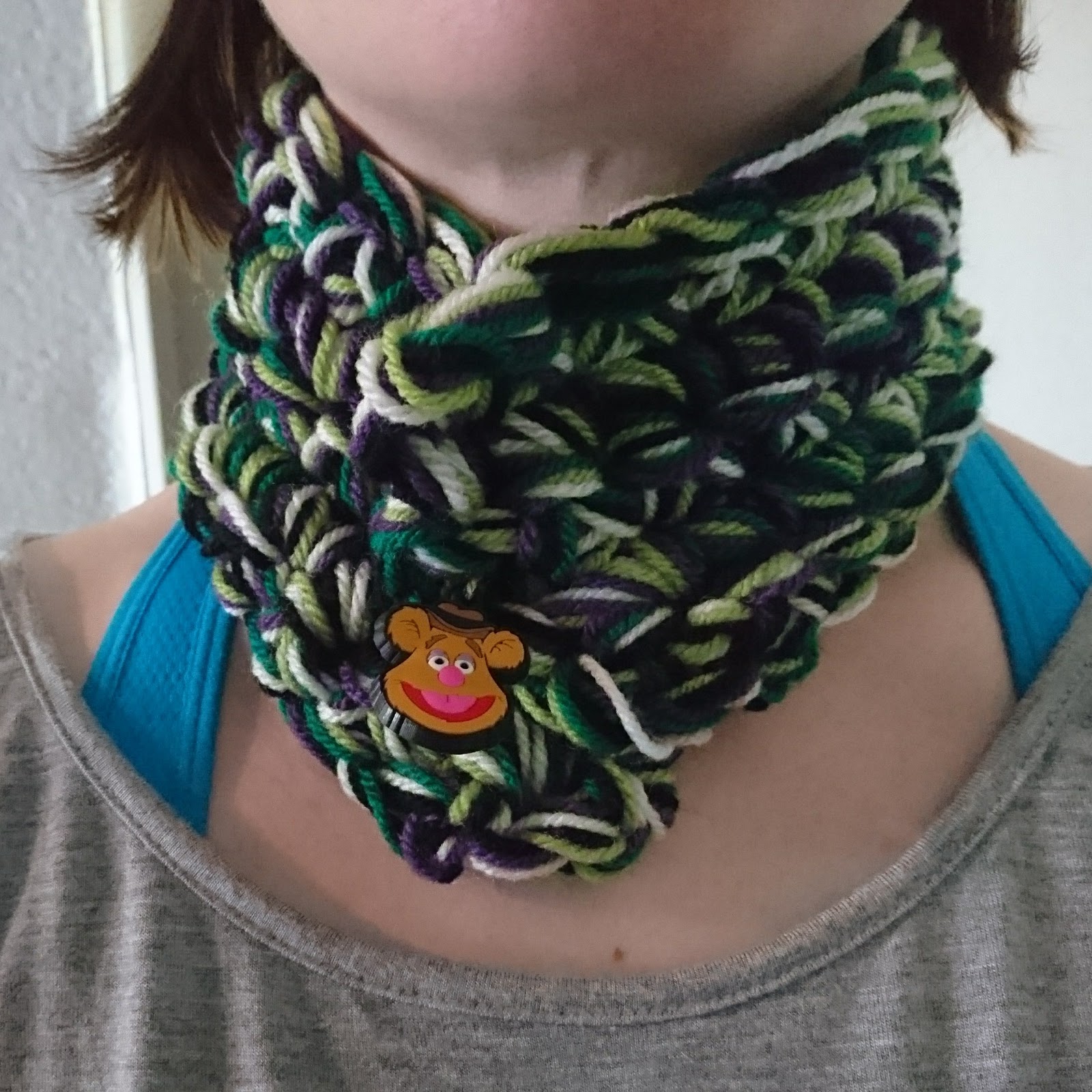 Den großen Plan werde ich dann also wohl später noch umsetzen aber erstmal habe ich einen schnellen, flauschigen Halswärmer gefunden. Dieser deckt wirklich nur den Hals ab, was im Sommer ja ganz nützlich sein kann, damit einem nicht gleich zu warm wird. Quelle der Idee ist Genuine Mudpie mit ihrem possierlichem Halswärmer.