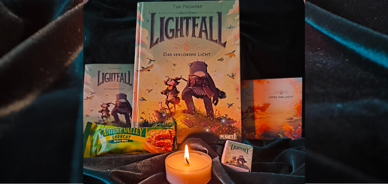 Als ich Lightfall zum ersten Mal gesehen habe, habe ich mich sofort in die Figuren und die Zeichnungen verliebt. Eine Fantasy-Story, die so wundervoll gezeichnet ist, dass sie sofort ein gemütliches Gefühl vermittelt. Das wollte ich unbedingt lesen. Es ist eine Fantasy-Welt voller ungewöhnlicher Figuren, die doch irgendwie liebevoll wirken.