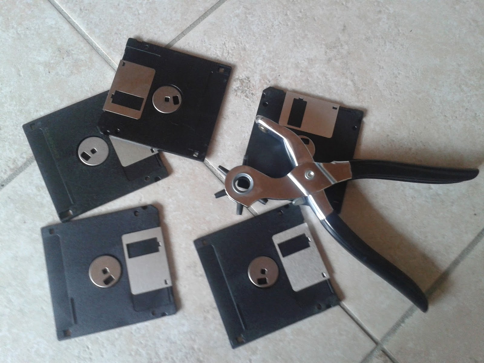 Schnell noch eine alte Zeitung oder so als Unterlage und schon kann man die alten heiß geliebten Floppy Disks einer neuen Bestimmung zuführen: