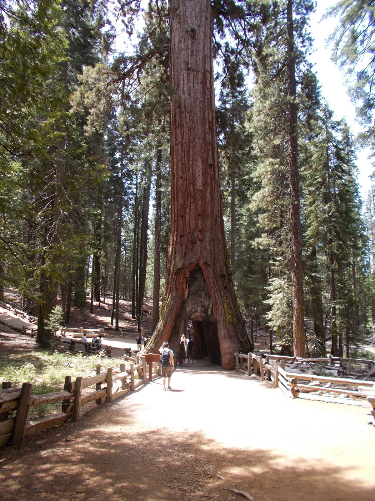 Nachdem wir weiter konnten, ging es erstmal hoch zum „Fallen Tunnel Tree“. Dieser Baum war so groß und hatte einen riesigen Durchgang bevor er umgestürzt ist, dass man damals noch mit Kutschen und später auch noch mit Pick Ups durch den Baum durch fahren konnte. Danach wieder zurück zum Museum, nun auch geöffnet haben wir uns angesehen, was so ein Giant Sequaia eigentlich brauch zum Überleben. Überraschung: Blitzschlag und Feuer. Zum einen damit das Unterholz weg brennt und die Samen in den Boden kommen können, zum anderen um Platz zu bekommen. Es gibt jährlich massenhaft Einschläge in diese Bäume und viele sind dadurch gezeichnet, z. B. durch Tunnel, aber trotzdem leben sie weiter.