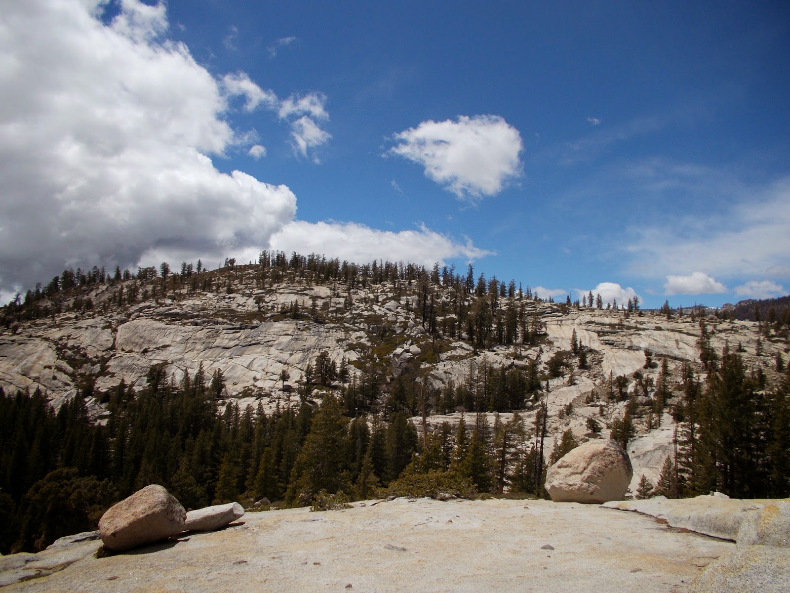 Auf dem Pass hat man eine wahnsinnige Aussicht. Viele kleine Flüsse, Auen und Bergseen. Hier wurde mitgedacht und es gibt viele Haltepunkte und Parkplätze. Hier nicht anzuhalten wäre schön verrückt. Wir haben eine Menge Fotos schon auf dem Weg ins Yosemite Village gemacht. Bei so vielen Kurven wird das fahren auch nicht langweilig.
