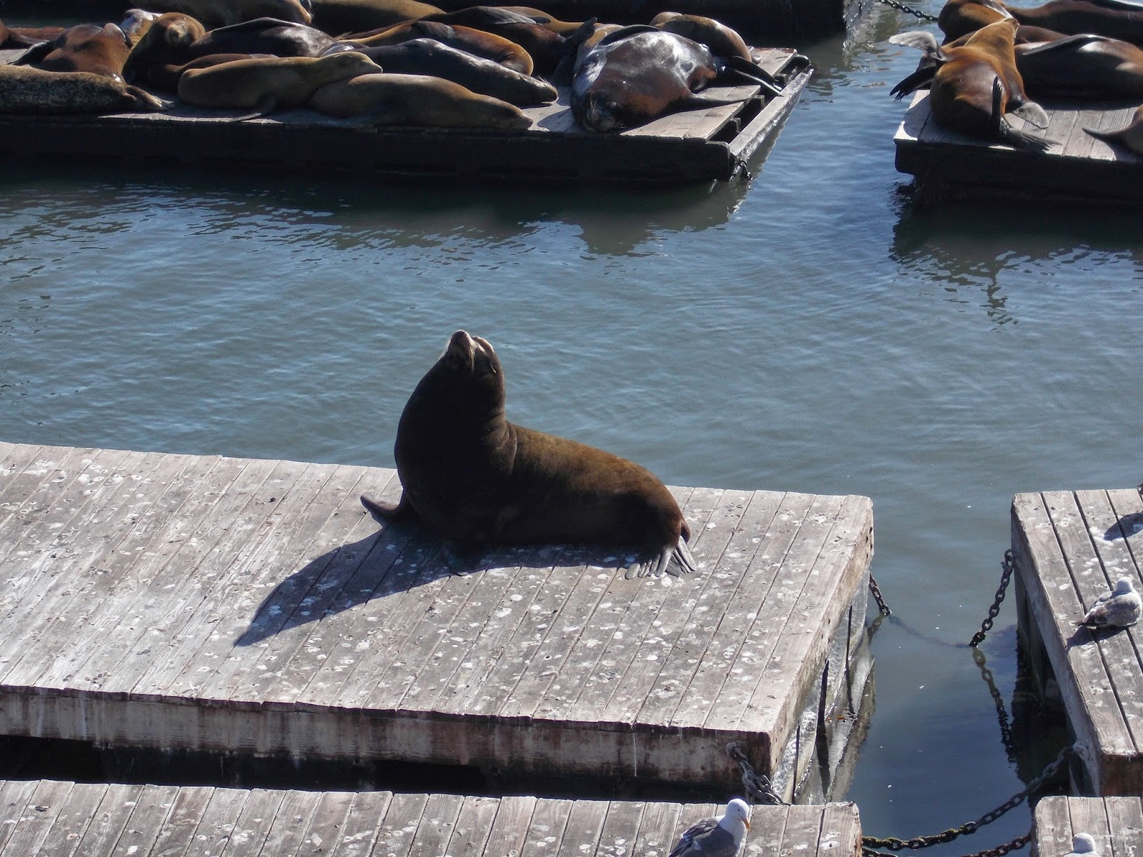 Daraus wurde ein toller Abend mit vielen Tipps und einer Einführung in die Biere der Umgebung. Das Hotel liegt so dicht an den Shoppingmöglichkeiten, dass am nächsten Tag erstmal die Umgebung gesichtet und etwas eingekauft wurde bevor es zum Fisherman’s Wharf und Pier 39 ging. Es war zwar recht voll, aber spannend und die sich sonnenden Seelöwen sind zu süß. Auch wenn ich gelernt hab, das unsere Robben flauschiger sind. Vom nächsten Pier aus hat man eine schöne Aussicht auf Alcatraz, Treasure Island und ebenfalls die Seelöwen, die einen dort beim Dösen in der Sonne beschallen.