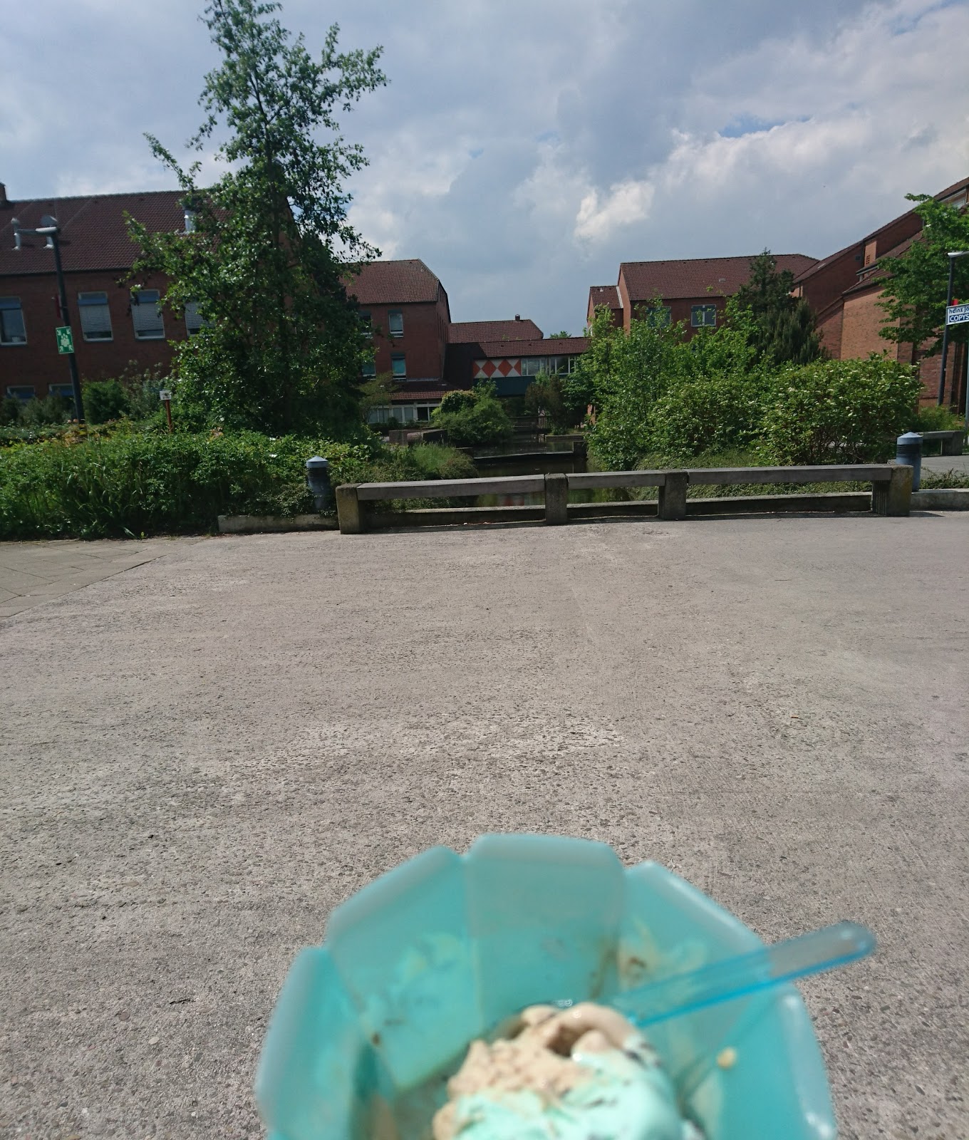 Nach der ersten Vorlesung also richtig viel Freizeit bis zur nächsten Vorlesung. Erstmal im Einkaufszenter um der Ecke rumgetrieben. Ein paar Erledigungen gemacht, Mittag gegessen und ein Eis mitgenommen zum Essen an der Hochschule. Dann noch die Mails gecheckt und 2 positive Rückmeldungen zu Einsendeaufgaben erhalten! Der Tag wird langsam besser!