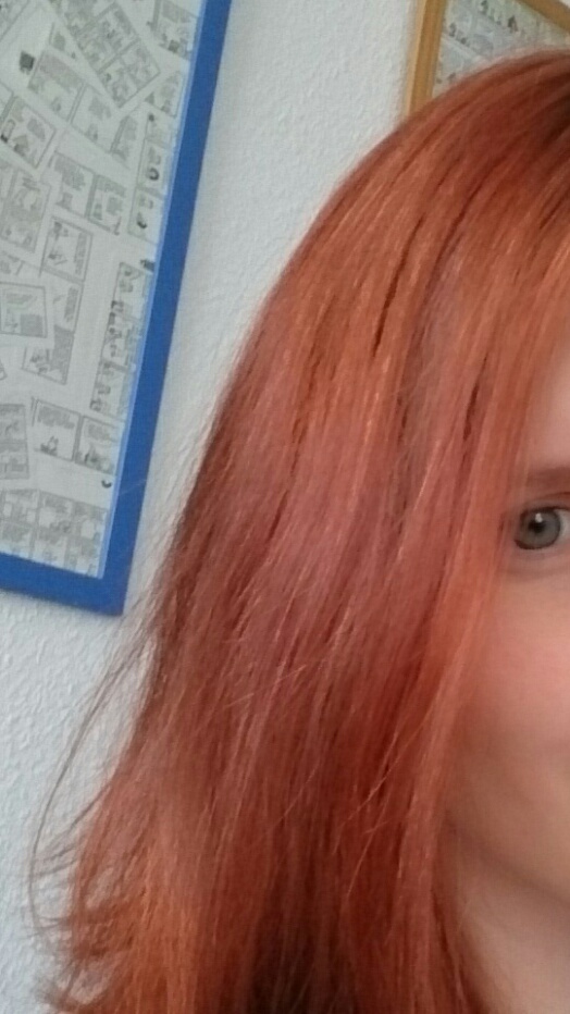 Eigentlich bin ich mit dem Ergebnis zufrieden. Das Ergebnis war schön zimtig, der Ansatz war verschwunden. Allerdings finde ich die Farbe in der Sonne wesentlich heller als erwartet. Im richtigen Licht bin ich dann schon ehr kupferblond statt kupferbraun. Allerdings sind ja auch helle Haare immer eine gute Ausgangsposition für neue Farben…